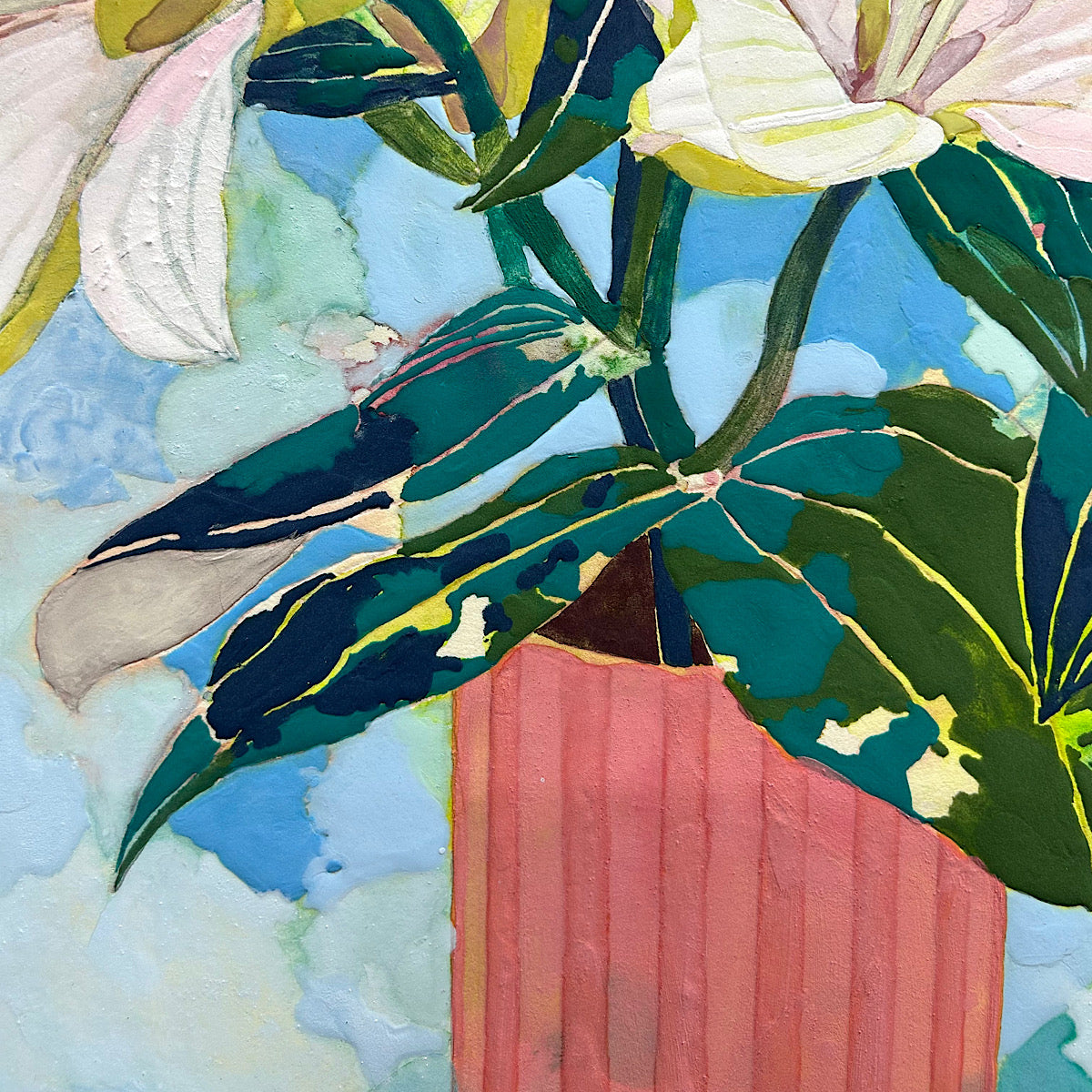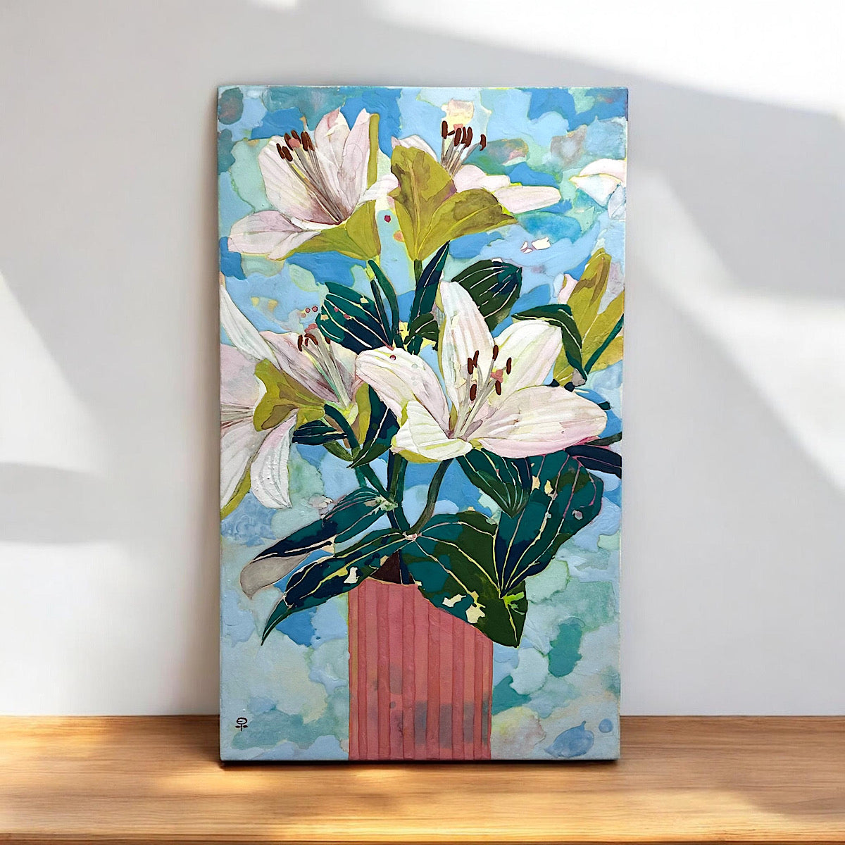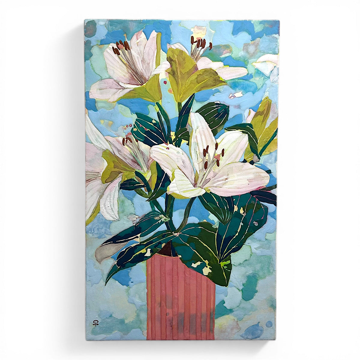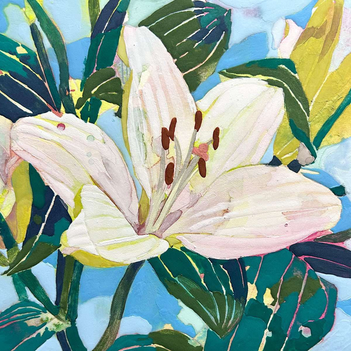 美しく空に向かって咲き誇る百合の花が、藤原氏ならではのカラフルな色使いと、立体的な表現技法で描かれております。