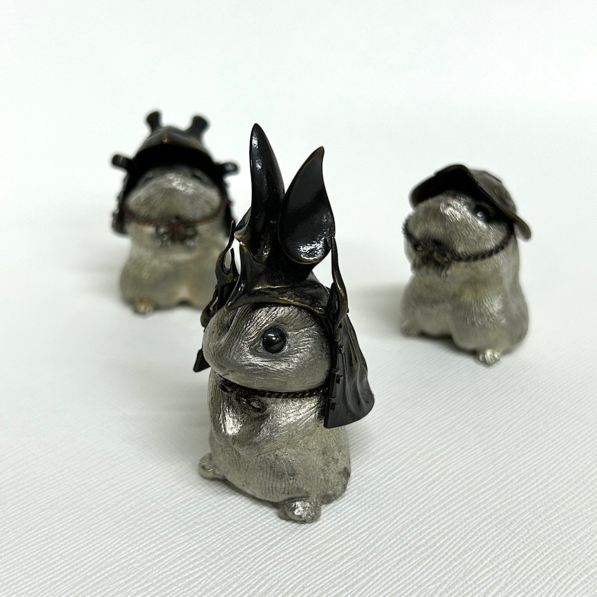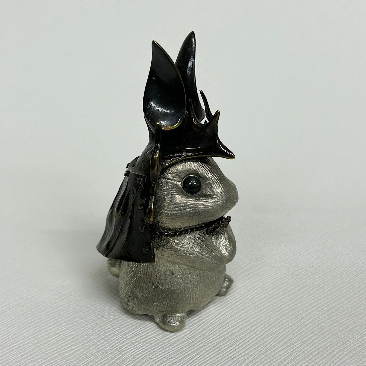 金属造形アーティストの祝迫芳郎氏によるウサギの武士をモチーフとした小さな作品です。