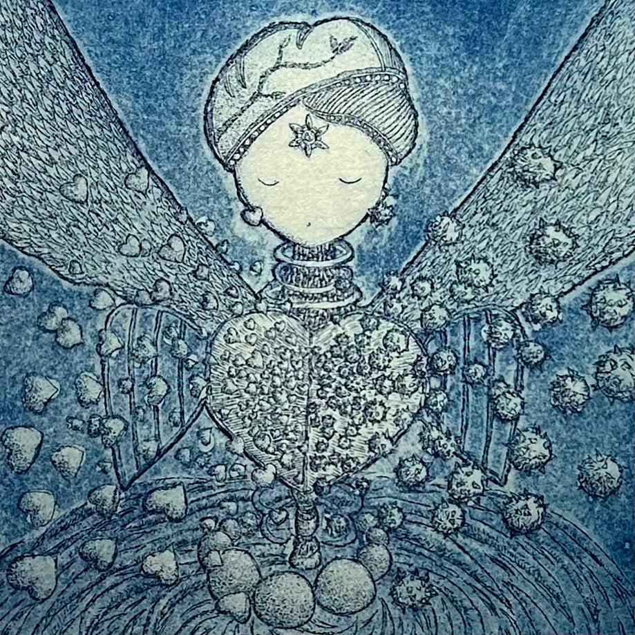 異色のサラリーマン銅版画家として人気の前田勝弘氏が個性的なキャラクターを通して、人間の複雑で繊細な内面性を表現したオリジナル銅版画作品です。