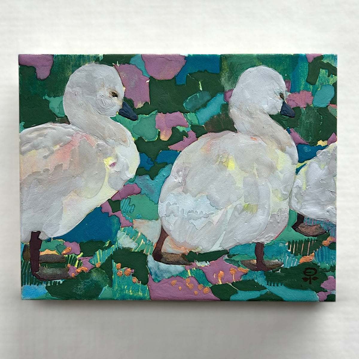 実力派の若手女流日本画アーティスト、藤原 早苗(Sanae FUJIWARA)氏による、2羽のアヒルをモチーフとした明るく可愛いらしい絵画作品!!